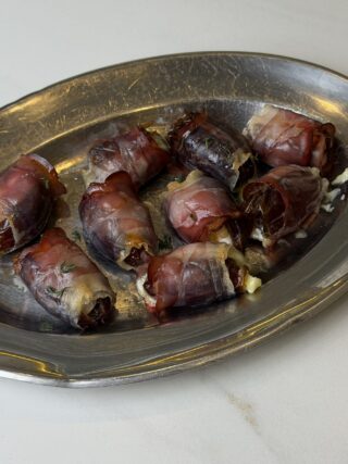 Įdarytos datulės su juoduoju kumpiu