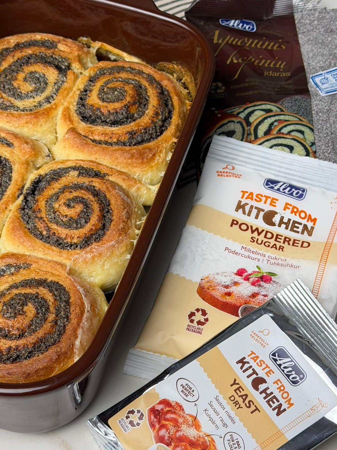 Pačios skaniausios bandelės su aguonomis, kurias kada kepiau ir valgiau. Gal ir labai stiprus pareiškimas, bet skanesnių bandelių su aguonomis dar niekad nekepiau. Aišku, kad aguoninių bandelių pagrindas yra geras įdaras, kuriuo čia pasirūpina Alvo
