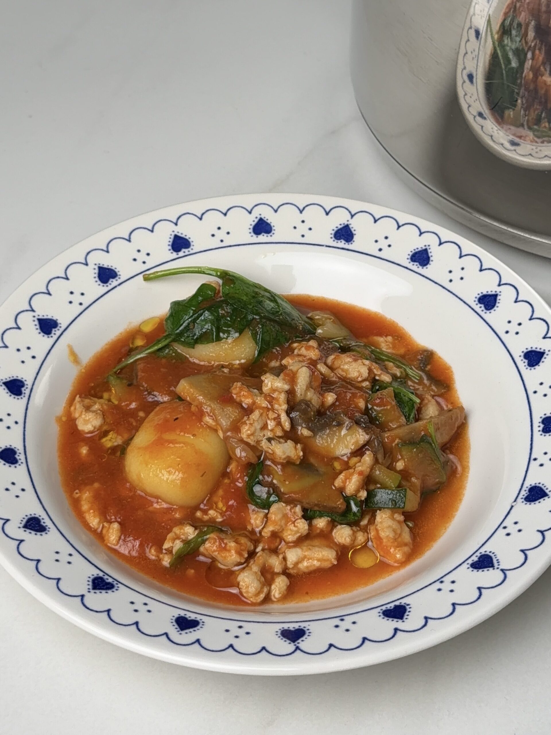 4. Sudedame virtinukus, išmaiųomr it , išmaišai ir leidžiame pavirti dar 5 minutes, pabaigoje sudedame špinatus ir išjungiame kaitrą.