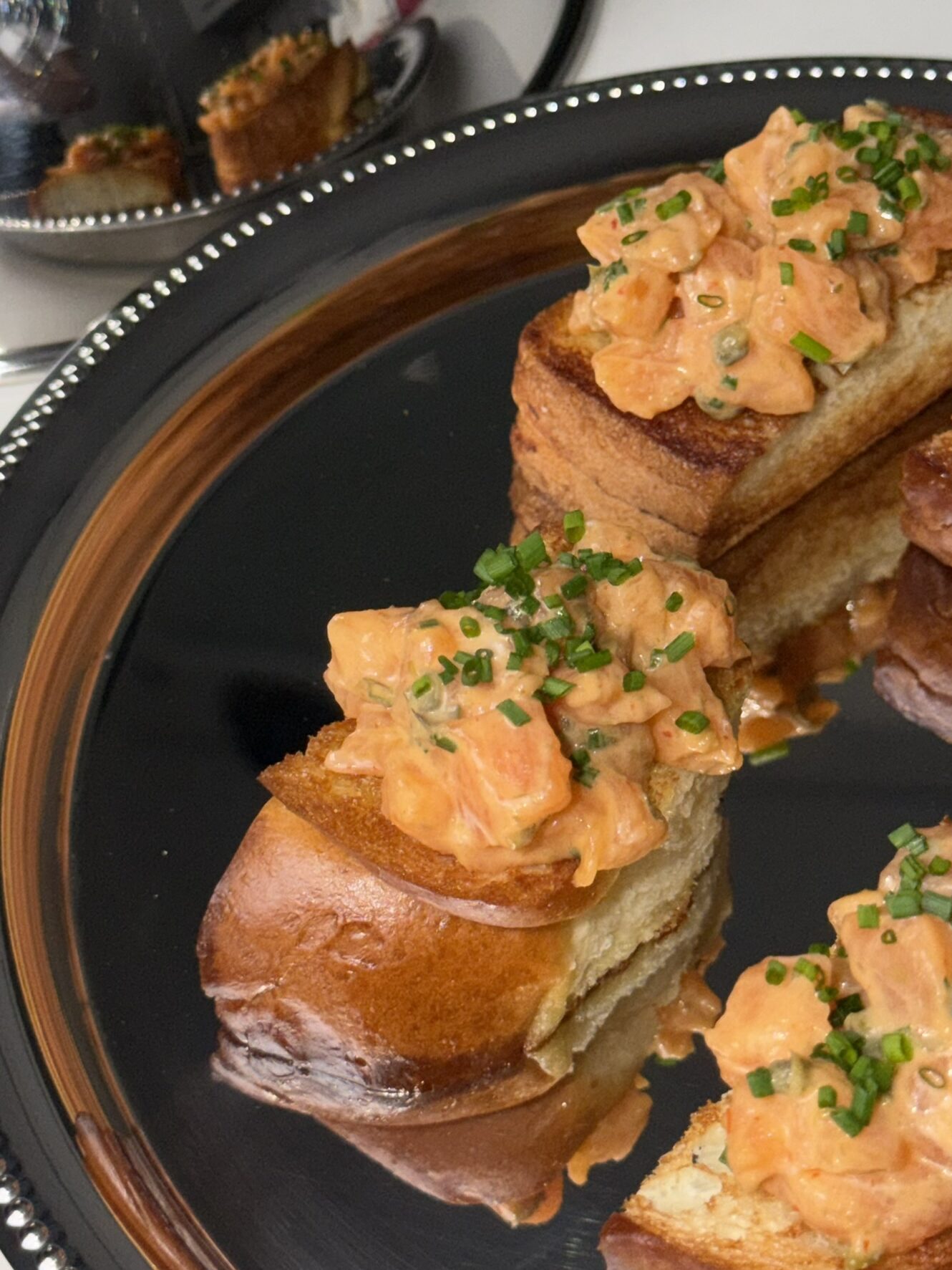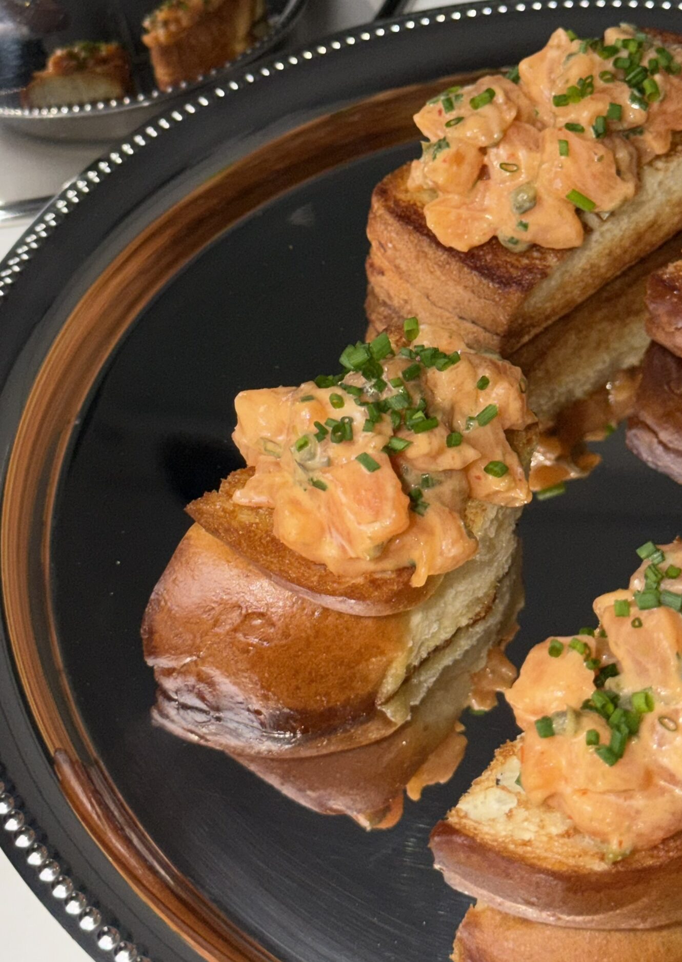 Lašišos tartaras – gerai žinomas, gal net kiek pabodęs užkandis. Bet jeigu jį šiek tiek atnaujiname ir patiekiame ant skrudintos brioche duonelės, gauname puikų užkandį dalintis ir, žinoma, puošiantį stalą.