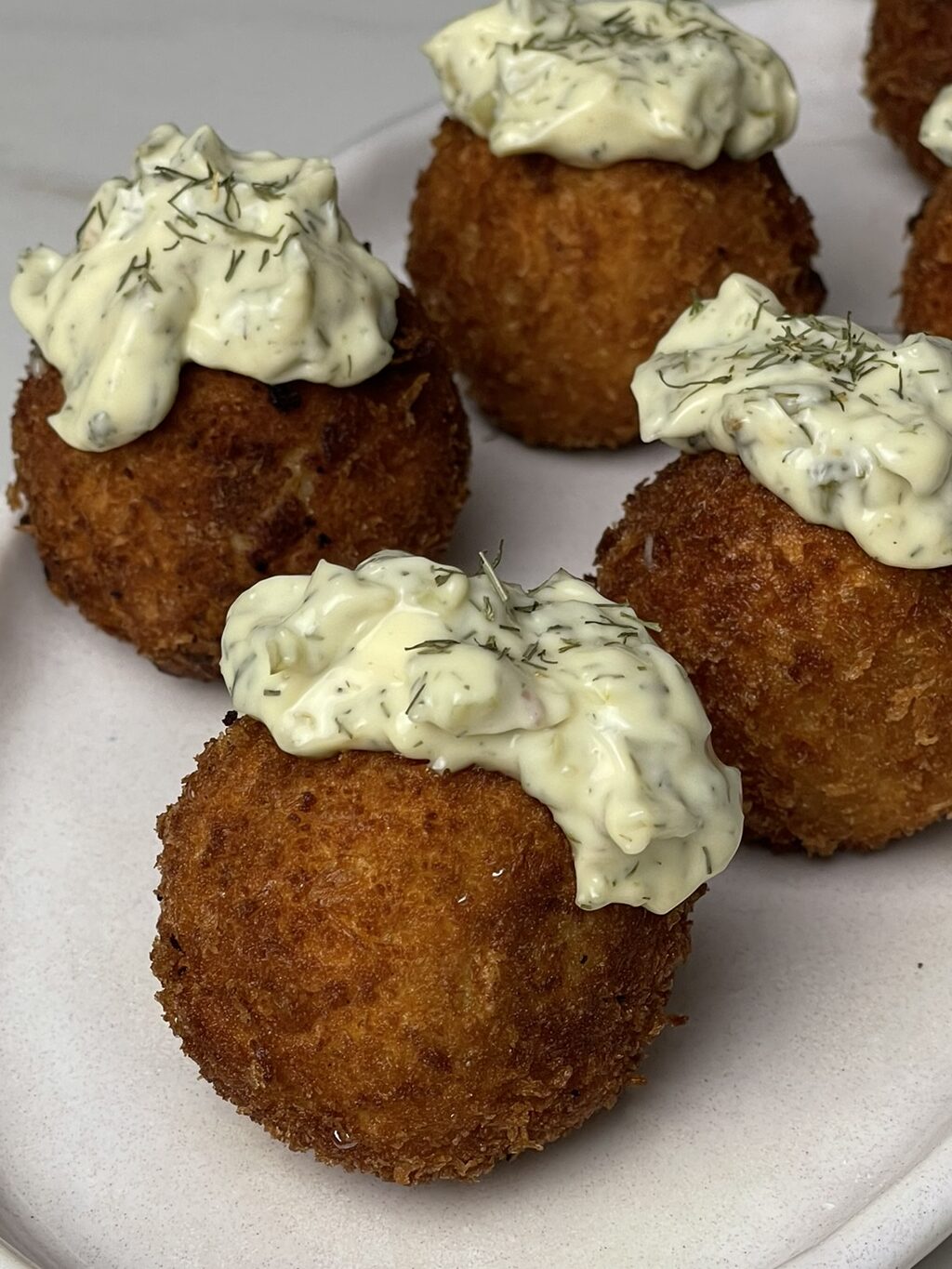 5. Po šaukštelį padažo dedame ant kiekvieno kukulio, bet taip pat rekomenduoju likusį padažą patiekti šalia.